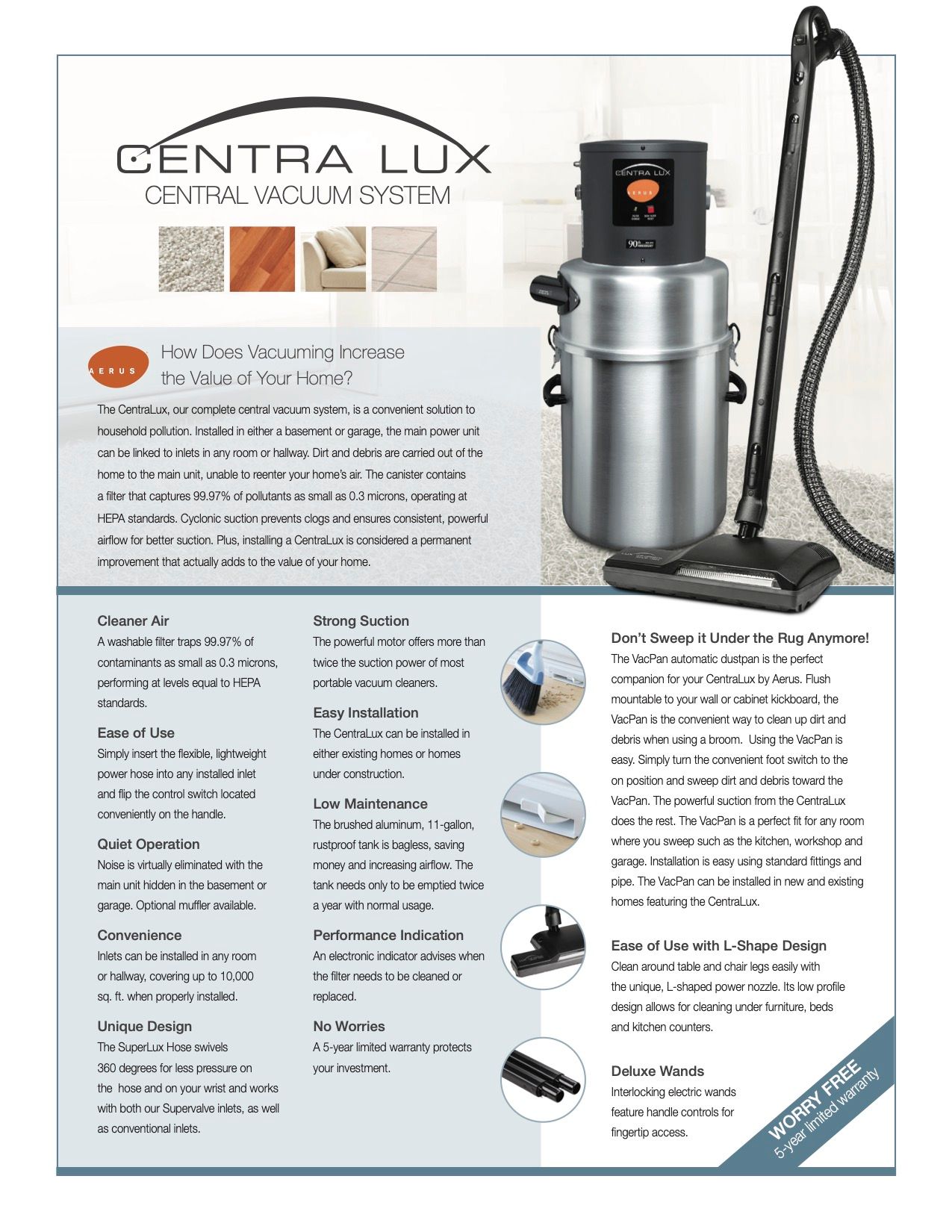 - Easy Installation - The CentraLux can be installed in either existing homes or homes under construction